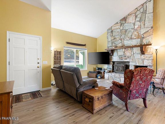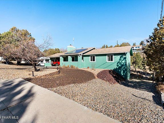 Welcome to this charming, updated home nestled in a beloved Prescott neighborhood, just minutes from shopping and downtown. Offering single-level living, this 3-bedroom, 2-bathroom residence features a welcoming living room highlighted by an impressive floor-to-ceiling flagstone fireplace. The updated kitchen boasts quartz countertops and a spacious pantry, perfect for cooking and entertaining. Step outside to discover a large new deck, ideal for outdoor gatherings and enjoying the serene views of the beautifully landscaped backyard. The outdoor space also features raised bed gardens, along with gardening supplies to help you get started. Both bathrooms and the kitchen have been tastefully updated, complemented by all-new flooring throughout--no carpet here. The new windows and HVAC