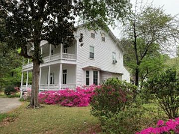 This home is a Rare Jewel!!l This home has been continuously lived in since 1857 by the same family. The grounds have been beatifically managed in the old world fashion with great sentinel Oaks, Magnolias, and camellias. There is another small home behind Main home that could pose as a mother-in-law suite, guest house or office or Studio. Downstairs, The Bishop's suite contains a magnificent library of many first edition books, and has been the suite for many Catholic bishops over the years. The home has the original wall paper and it incapsulates the feel of a real historic home enlivened by the generations that have lived under this great roof. Curving staircase accesses upstairs 4 bedrooms, small drawing room and portico. True French Doors open to the second story portico and main porch. Home has three levels, the third has become an attic space. Home has formal dining room with a turret room attached. Bishop's bathroom has original fixtures with deep footed bathtubs.