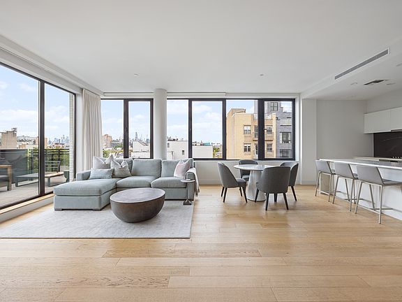 Lease Start Date: October 15, 2025 Available for rent, this spectacular full-floor two-bedroom penthouse is situated in the heart of Williamsburg, offering sweeping skyline views and a 444-square-foot private terrace, an outdoor lover's dream. Features of this 1,326-square foot penthouse include white oak wood flooring, soaring ceilings, three-zone central AC, soundproofed windows from Lumen, and the highest quality fixtures and finishes throughout. The key-locked elevator opens to your own private vestibule, which can be used as your personal mudroom or entry. Encased by walls of windows, the sun-flooded and spacious living and dining areas seamlessly flow to the penthouse's expansive terrace as well as its state-of-the-art open kitchen - which features Porcelanosa fixtures and Bosch appliances throughout. A gallery separates the public and private wings of the home for utmost privacy. The sumptuous corner primary suite features direct access to the penthouse's outdoor space, as well as a walk-in wardrobe area and serene en suite bath with rain shower. There is a second comparably sized guest suite with en suite bath and shower tub, as well. An in-unit washer/dryer and powder room complete this unparalleled offering. 650 Metropolitan Avenue is a boutique condominium newly developed in 2020, boasting only eight apartments in the heart of Williamsburg. The building features a virtual intercom system, private key locked elevator, and common roof deck with a built-in bar and entertaining area. Conveniently located only a block away from the Lorimer St L & G train stations with easy accessibility to the best shopping and dining that Brooklyn has to offer. Pets allowed on a case-by-case basis. This is a condominium unit and there are condominium fees associated with this rental.