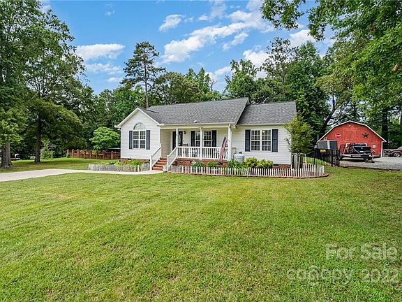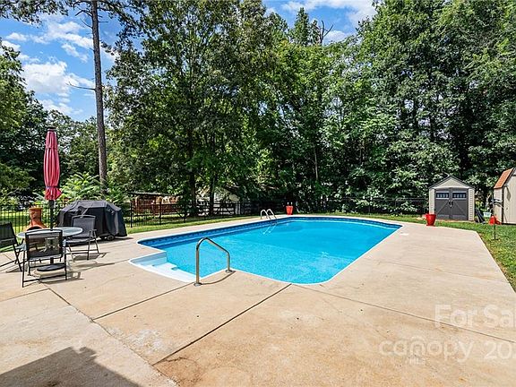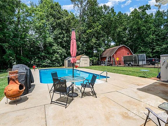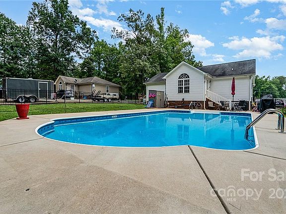 Adorable 3 bedroom 2 bath ranch with a gorgeous saltwater 32x18 in-ground pool! Open floor plan compliments the Kitchen and living room. The great room with vaulted ceilings, wide plank wood floors, and a free standing gas fire place that will convey. The kitchen has vaulted ceilings, an island with a breakfast bar, dining area, beautiful cabinets with matching counter tops and tile back splash. Also, stainless appliances including the refrigerator! Split bedroom plan separates the Large primary bedroom with walk in closet and private bath! The 2nd & 3rd bedroom and spare bath on the opposite side of home. Covered front porch with vinyl railings and fenced back yard! Also, 2 buildings for storage! Convenient to I-85. Enjoy plenty of sunshine laying out by the pool!