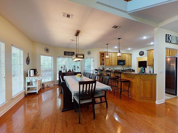 Welcome Home! Great family space on 1.4 acres. Large open floor plan. Master suite is down stairs. Spend your mornings on the front wraparound porch drinking coffee & nights on the back deck around the fire. There is a massive workshop on slab the is wired & insulated with additional storage space. Home does have generator hook up.