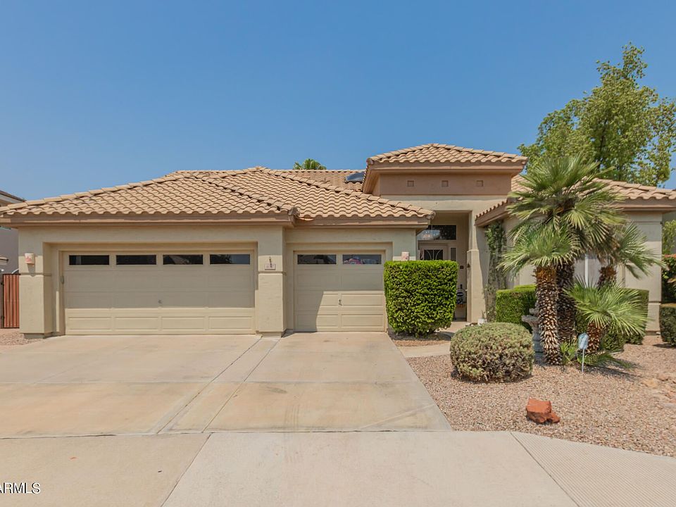 Looking for a new place to call home You've found it! This residence boasts new AC 2010, new roofing tar paper 2020 great curb appeal with easy-care desert landscape, and a 3 car garage! Spacious dining & living areas with vaulted ceilings, skylights, elegant light fixtures throughout, plantation shutters. The gorgeous kitchen is comprised of wood cabinetry with crown moulding, a pantry, granite countertops, tile backsplash, high-end appliances, and an island with breakfast bar. Main bedroom includes a walk-in closet with sliding mirror doors and a bath with dual sinks plus separate tub & shower. The sunning backyard features a covered patio, artificial grass area, built-in BBQ, and a refreshing pool! New pebble tech 2012, Entertainers Dream!!!