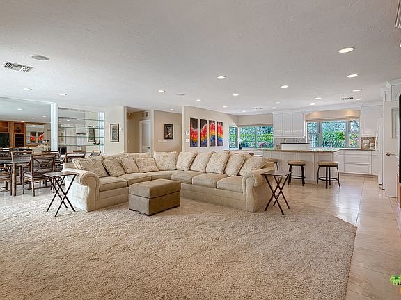 The fabled Movie Colony is the location of this picture perfect Central Palm Springs property. Just shy of 2800 sq. ft. the main house has 3 bedrooms and 2.5 updated baths. The sumptuous master suite with views to the backyard has 2 closets, including a large walk-in closet. Two guest rooms on the West side take in the extraordinary views of the mountain ranges. The large and grand living and dining area with fireplace is open to the chefs kitchen with an oversized center island with plenty of room for family and friends. The spacious back yard with center placed pool has generous room for lots of chaise lounges and dining spots either under the covered patio or not. The separate guest casita with fireplace and step down wet bar plus separate bedroom and bath also takes in the views of the lush and green back yard.