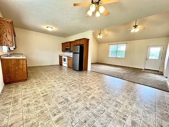 Welcome to 650 North Sunset, a move-in-ready three-bedroom/two-bath house with tall ceilings and large rooms on a quiet street in a secluded subdivision in Bolivar. Perched on the side of a slope with a great west-facing view, you'll find this spacious house just waiting for you! Limited hallways and an efficient plan give you lots of space. A vault in the living area and tall ceilings throughout, coupled with warm neutral walls and flooring make this house seem so large! The split bedroom plan puts the primary suite on the south end of the house close to the laundry area and two-car garage. The ancillary bedrooms and hall bath are on the opposite side of the house. The slope in the backyard provides extra privacy for the east-facing patio. The large backyard is fenced. The refrigerator and gun safe stay with the house.
