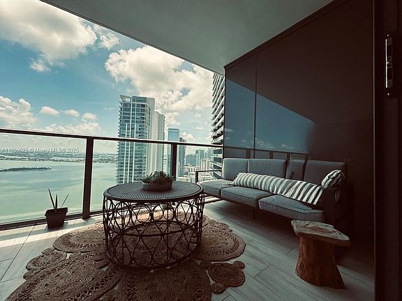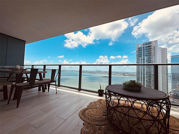 Luxurious high floor Big sgft 2 Bed+ Den/ 3 Bath at Paraiso Bay with endless direct views to Biscayne Bay up to the ocean, and the city skyline. Unit features great finishes of tile floors all throughout, California closets, blinds, European kitchen with top-of-the-line appliances, large terrace and private elevator. One assigned parking spots in best location and extra parking with Valet. Best resort style amenities: 100 ft Infiniti pool, residents lounge, cigar lounge, wine tasting room, two tennis courts, outdoor grill, bay front park and marina w/watersports, state-of-the art gym and SPA, movie theater, bowling alley, kid's play & games rooms, AMARA Restaurant by Chef Michael Schwartz.