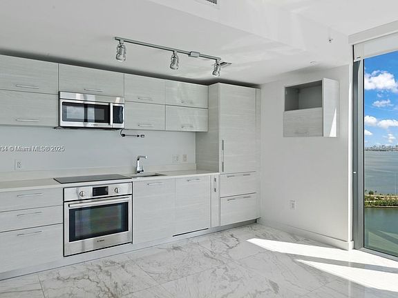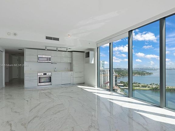 This stunning 1 Bed + Den, 2 full Baths corner unit at Edgewater neighborhood. The luxurious condo offers unobstructed, breathtaking views of Biscayne Bay and the Miami skyline from a wraparound terrace with glass railings, 9-foot high ceilings. Enjoy living with world-class amenities, including a resort-style pool, spa, BBQ grills, bowling lanes, state-of-the-art fitness center, tennis courts, theater room, wine room, cigar lounge, and more. The modern kitchen is equipped with high-end Bosch appliances and a built-in Sub-Zero refrigerator. Amara restaurant is just steps away, with additional dining, fitness, and entertainment options nearby in Midtown, Wynwood, and the Design District. Monthly HOA is $713 + Master HOA $535.