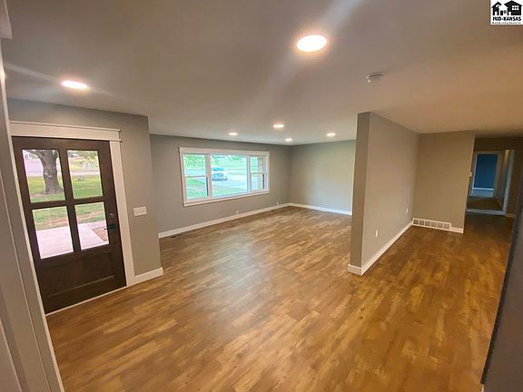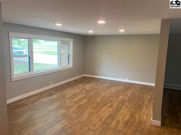 20 ACRES with Beautiful Home! This Country Home has been completely remodeled. It has that Farmhouse look with so many custom features. Open floor plan with an enormous amount of living space. Walk into the Formal Living Room and on into the spacious Family/Dining/Kitchen with huge Kitchen Island. Beautiful quartz countertops, Farmhouse Sink, soft-close Cabinets with plenty of prep space. There is a Breakfast Nook w/bench seats/storage. Lots of windows for plenty of natural light. Main floor has Master Bedroom w/ensuite and walk in closet, and 2 more large Bedrooms and another full Bath. Utility Room has place for 2 washers/dryers to accommodate the large family. Open staircase to basement where you will find another Large Family Room, 2 Bedrooms and full Bath, as well as lots of storage areas, Storm Shelter, and mechanical room. This home has a 2-Car Attached Garage, plus a 30'x15 Insulated Garage. And then you have over 20 acres of grassland for your recreational use or a few animals. Located just 1 block from the City Park and Pool for family fun.