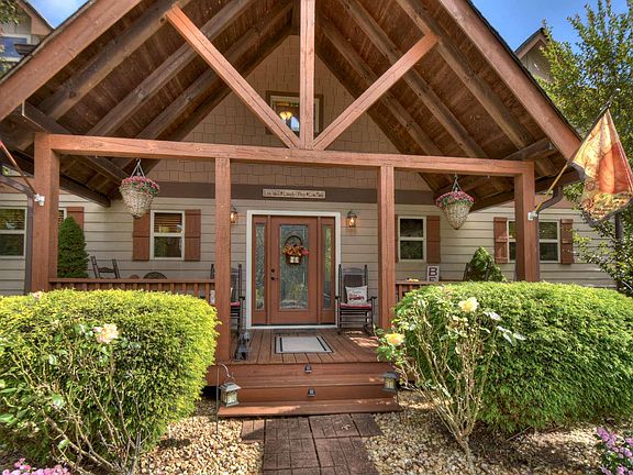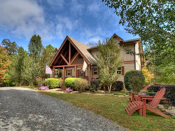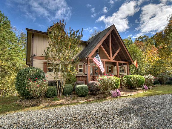 LOCATION, LOCATION, LOCATION! This lovely 3 bedroom, 2.5 bath home has a private setting, seasonal mountain VIEW and is conveniently located 5 minutes from shopping, dining & Hwy 515. Home has rustic features with beautiful vaulted wood ceilings, wood burning fireplace & oversize windows in great room. Open concept floor plan offers wide open spaces with plenty of room for families & entertaining. Master suite (walk-in closet, jetted tub, sep shower, his/hers vanities) on main, plus a half bath on main; upper level has large loft area, 2 BR & full bath. Lower level has a large family room & plenty of storage. Enjoy the outdoors on the welcoming front porch, large deck, firepit area & private backyard. The "Bluffs of Cartecay" community offers gated security, all paved roads, city water, high-speed internet, swimming pool, tennis court & Cartecay River access. (Laundry in bsmt, no garage)