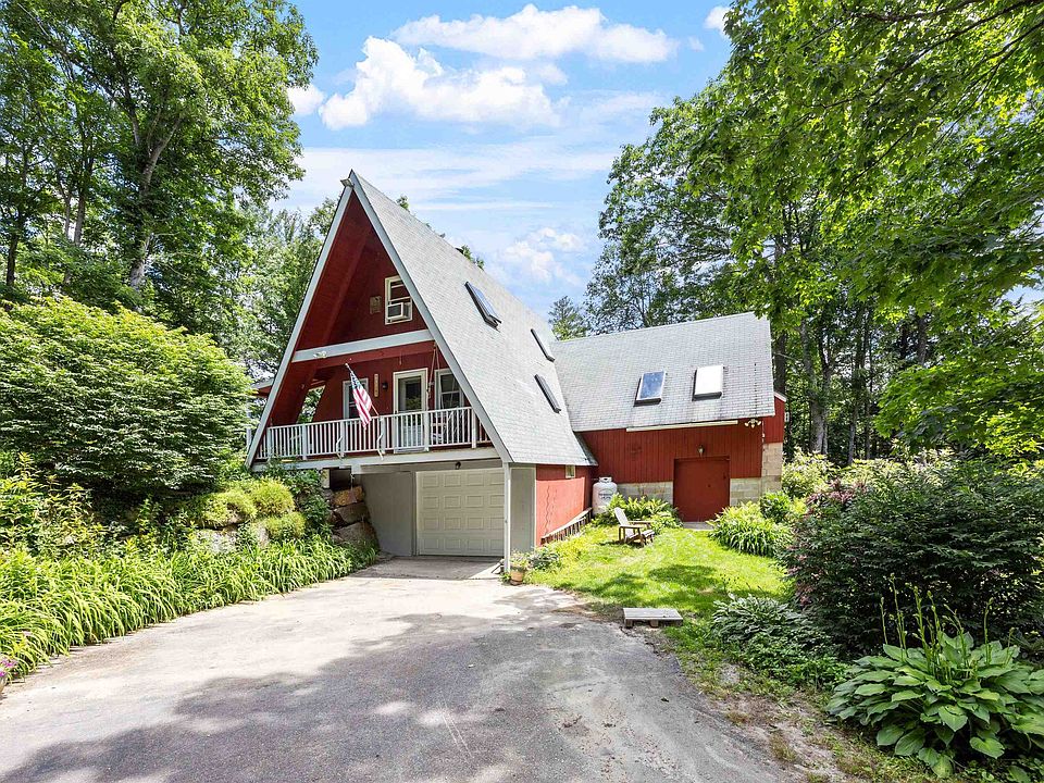 This idyllic A-frame home is a true gem, combining updated amenities with the timeless appeal of nature. New windows, doors, and sliders installed in 2023 flood the interior with natural light, creating a bright and welcoming environment and offer peaks of Rattlesnake Mtn. The spacious deck overlooking the back grounds provides the perfect venue for gatherings and summer firefly watching. Complete new bathroom installed in 2020 with laundry conveniently located on the 1st floor. Enjoy an evening reading your favorite book by the gas fireplace. The reverse osmosis water purification system and water softener installed in 2016 ensure that you have access to high-quality water throughout the home. Surrounded by beautifully crafted vegetable and flower gardens and featuring stone stairs and paths, the outdoor space is a haven for nature lovers and gardening enthusiasts. Whether you're relaxing indoors, tending to your garden, or exploring the landscaped grounds, this property offers a peaceful and fulfilling lifestyle. Don't miss the opportunity to own this charming A-frame home in the charming town of Rumney NH, close to Rumney Rocks Climbing, Baker River, shopping and restaurants. Skiing, golfing, fishing only a few miles away. Exit 26 off I93 is 90 minutes from the MA border...this home could be a short ride to your peace and serenity!