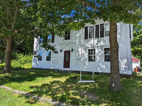 Investors take notice! This 1785 Colonial still holds much of its charm, ready for you to bring it back to life. Pumpkin pine hardwood floors, wood beams, and a center captain's staircase. You'll also love the HUGE 54x28 attached garage/barn with a heated workshop, bonus room upstairs, screened in porch, and chicken coop. An additional heated detached 1 room cape is perfect for a year-round hobby studio. With this much house on 6.8 acres, the possibilities are endless! Note: tax card states 2 bath, but 1 bath has been removed during the reno process. Cash or rehab loan, sold AS-IS