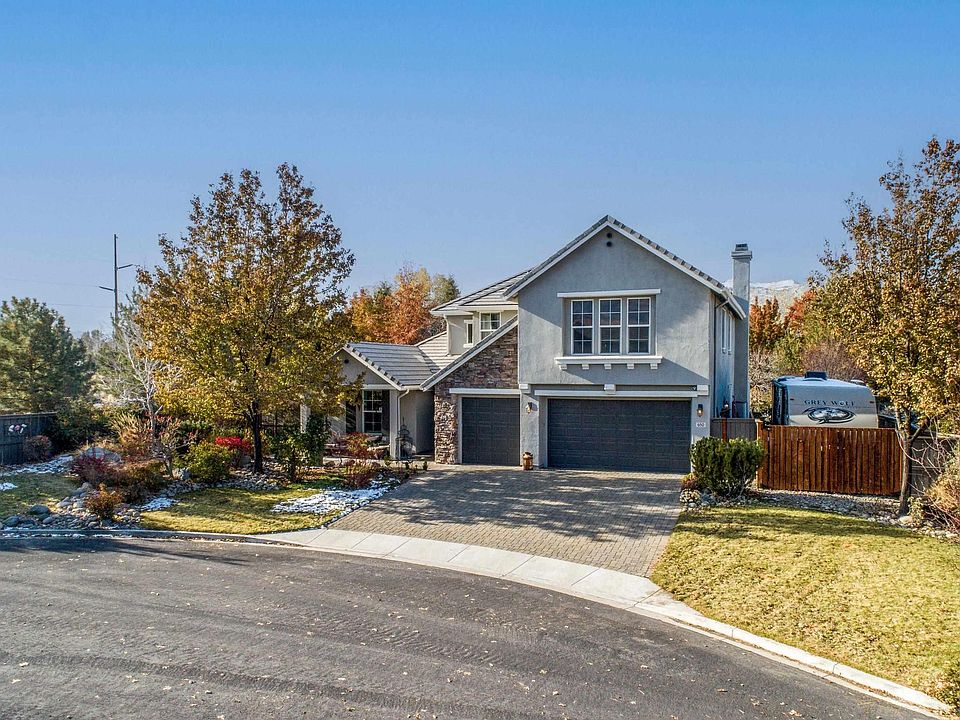 Designed with your comfort in mind, this large (3195 sq.ft) flexible floor plan home has it all! Located in Curti Ranch on .28 of an acre, this light filled home features a bedroom and den downstairs, a den, good size living area, with a fireplace and an updated kitchen. The expansive outdoors was designed with the perfect amount of flowers, bushes and trees that provide color for every season. Designed for entertaining, relax under the gazebo or take a soak in your large jacuzzi., Just the suburban atmosphere you've been looking for! The comfortably sized primary bedroom is a secluded retreat that features a large closet, double vanity, soaking tub and shower stall that overlooks the backyard. This family home has a loft area on the second floor which can easily double as second living space or large office. Need RV or toy storage? The side yard is perfectly suited until you are ready to get away. The perfect location for outdoor fun. Perfectly situated in South Reno neighborhood, you'll love it here. Located on a cul-de-sac, you are an easy drive from everything you need. Appreciate the benefits of a large 3 car attached garage and a storage shed. Schedule your private tour today.