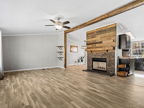 Escape to rural bliss in this home located in the southern tip of Moore Co! This 2-bed, 2-bath manufactured home on a permanent foundation offers tranquility and privacy. Containing just over 1,400 sqft, this split floor plan home boasts central living space with an accent fireplace in the family room. This home also offers additional interior expansion in the form of an office. Just off the dining room and adjacent to the kitchen, you may retreat to the covered deck to enjoy those peaceful afternoons. Access the driveway and brand new detached garage/shop building from stepping stones between the deck and back door. In addition to the shop, you will find a new run-in storage building and prefab storage barn. All of these amenities can be found on just over 6 rolling acres divided by Pierce Hollow Road. Welcome home to your peaceful retreat!