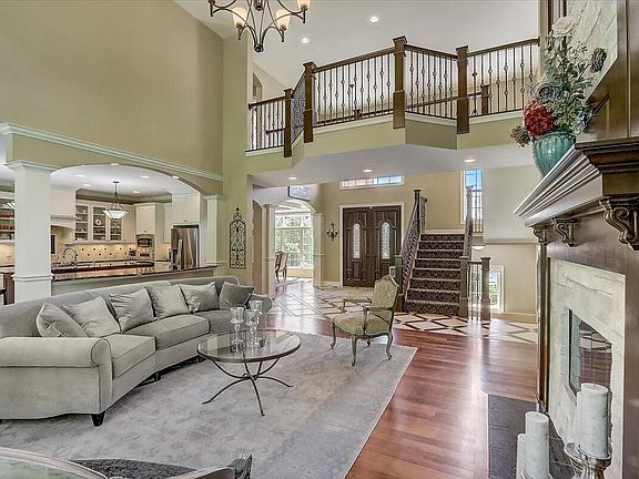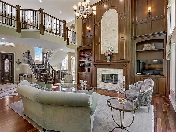 Gorgeous custom built home located on end of private wooded cul de sac in prestigious Hawks Pointe subdivision. 6 BR and 5 1/2 baths. Impressive 2 story foyer and 2 story great room with wall of windows and intricate stone and cherry paneled fireplace. Main floor guest suite/office with private full bath and closet. 4 large bedrooms on second floor with attached full baths and walk in closets. Second level laundry room. Large open kitchen and dinette. Partially exposed basement with large windows and bedroom/exercise room with connecting full bathroom. Large level backyard with mature trees. Excellent curb appeal & professional landscaping.
