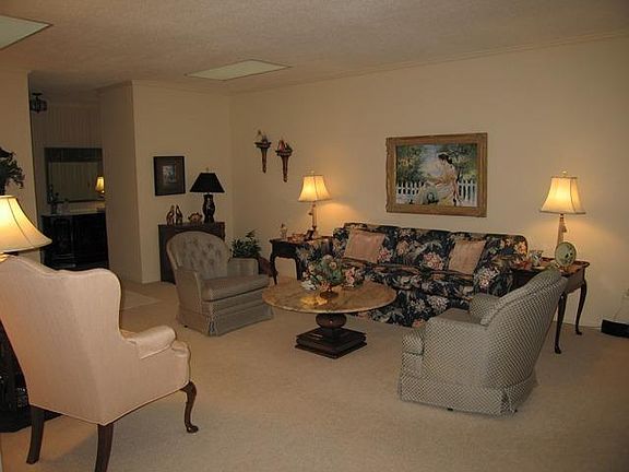 Immaculate home lovingly cared for by owner. Updated kitchen with solid surface, tile backsplash and hardwoods. Spacious living and dining room for formal entertaining plus a cozy den and Carolina room overlooking garden setting and large patio area. Skylights and lots of windows bring in light and add to the charm of this home. Newer heat pump, roof and appliances add to the updates making this home younger than its years. Closet in bedroom 3 currently set up with shelves could be closet. Sunny Carolina room addition opens to large patio for wonderful outdoor pleasure. $140/month covers upkeep of common recreational space and entrances, pool & pond maintenance, library/meeting room and unlimited golf at no green fees.