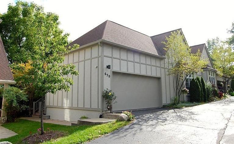 Handsome rare ranch condo nestled at the end of wooded & quiet cul-de-sac in Ridgewood Condominiums! Desirable area & location - walk to downtown, shopping & restaurants. Open & light-filled w/vaulted & 11'ceiling, lots of privacy & windows. This home is a treasure. Sharp foyer w/entry closet, hrdwd flrs & skylight. Open & roomy dining & living rm w/rear facing windows, beautiful wooded views & access to great deck! Spacious kitchen has abundance of white, crisp cabinets, newer appliances, hdwd flrs, center island & plenty of space to entertain & cook. Unique & cozy breakfast nook. Comfortable sitting area outside of kitchen is the perfect reading spot. Gorgeous stained glass dr leads to 1st flr master suite retreat w/cathedral ceiling, walk-in closet & ceramic tiled bath w/soaking tub & separate shower. W/O LL features a large FR w/gas FP, wet bar & welcoming screened porch. A 2nd bedrm, full bath & 3rd bedrm/study complete the LL. You will not be disappointed in this superb ranch!