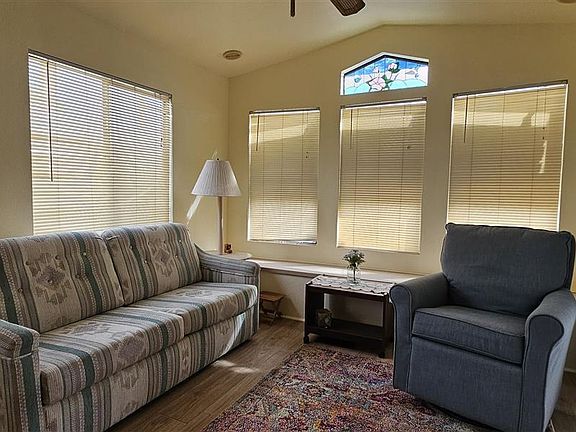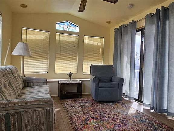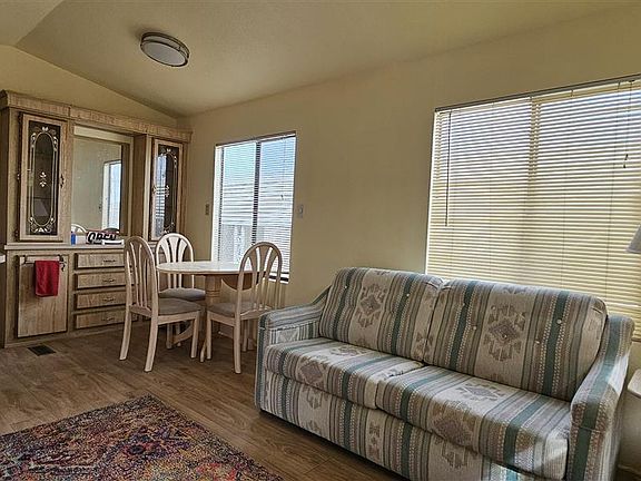 Tucked away in the gated community of Orchard Gardens featuring a community pool, spa, pickleball court and clubhouse. This cozy park model has updated features including new flooring and tile shower. This property is complete with a covered carport and shed that includes laundry facilities. Enjoy being walking distance to a neighborhood Walmart and a short drive away from various restaurants. See this home today!
