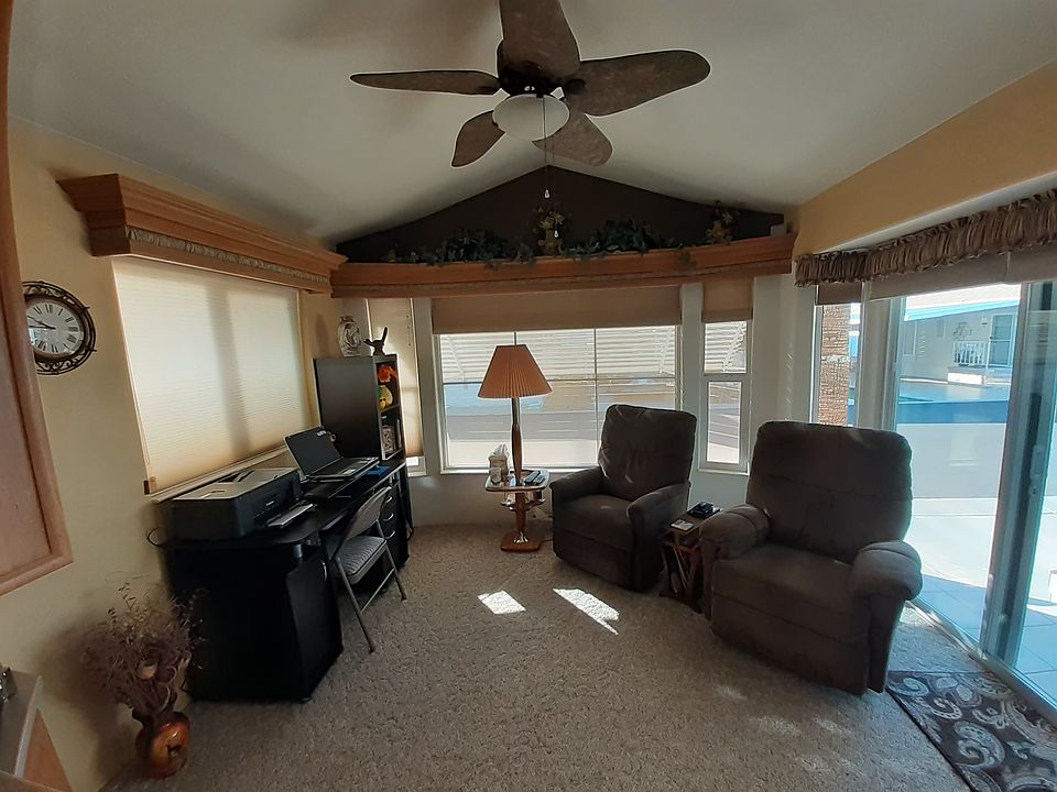OUR CANADIAN BUYERS BACKED OUT AT THE LAST SECOND DUE TO CORONA VIRUS SCARE. WE HAVE ALREADY MOVED EVERYTHING TO A NEW PLACE, SO WE ARE SELLING AT AN INCREDIBLE PRICE. OUR LOSS IS YOUR GAIN. WE WON'T SELL AT THIS LOW OF A PRICE AGAIN NEXT SEASON. Yuma County, Arizona, has ZERO cases of COVID-19 (the Corona Virus). Price is solid $49,900. We paid $70,000 for it in 2011 (second owner) and original owner offered us $65,000 for it a few years ago, but we didn't want to sell at that time because we loved the place and Orchard Gardens park. Health problems forcing us to sell now. You OWN the land under this park model trailer in this beautiful gated community. This doesn't happen too often in gated communities in Yuma, Arizona. CONTACT: TEXT OR CALL JIM: Five, Four, One, Four, Zero, Eight, Seventy-seven, ten Newer park model 2006. Immaculate and meticulously kept. Queen bed and large corner bathroom. Pretty brick courtyard in back with Fichus trees for shade. Comes fully furnished with upgrades galore. Brand new Lazy-Boy and Best matching chairs in 2018 at a cost of over $1,000. Brand new computer desk in 2018 (replaced couch). Large 40" flat screen TV in 2017. One of the nicest units in the park. This unit is ready to go. We will be happy to close it up for the summer months for you. Check out the new pictures...brand new recliner/rocker chairs, brand new desk and shelves, new televisions (40" in living room and 32" in bedroom). Lots of upgrades in this one. Very well kept and immaculate. Our Unit 97 Features 1. Dues Paid Until January 2020 and Personal Property Taxes paid through 2020 2. Nicest Unit for Sale in Park – Impeccable Maintenance and Cleanliness 3. Cavco Model built in 2006 – kept like new (400 SQ FT) 4. HardiePlank® Lap Siding All Around / 30-year architectural shingled roof 5. Sale includes all outdoor furniture 6. nice landscaping 7. Completely furnished with • two rocker-recliners • desk setup • Tempur-Pedic® Mattress (queen) • deluxe, exquisite bed set (shams, comforter, etc.) • top-of-the-line cooking utensils • fully stocked kitchen 8. upgraded bronze fixtures 9. reverse osmosis water clarification system and softener 10. beautifully upgraded fans (living room and bedroom) 11. two solar tubes (kitchen / bathroom) add natural light 12. bumped out bay window in dining area 13. Second nice refrigerator in shed 14. dining room hutch with decorative glass 15. large 39” television in living area and television in bedroom also 16. upgraded Berber carpet 17. upgraded hard-surface composite counter tops 18. custom paint 19. vaulted (crowned) ceilings makes it feel large and spacious 20. sheet rock interior / tape and textured walls w rounded corners with nice re-painted interior design colors 21. Tape and textured plant shelves and soffits 22. nicely decorated unit 23. custom modern paint (re-painted 2019) 24. Tons of storage – lots of extra storage built in (drawers, cabinets, etc.) 25. Lots of other extras and upgrades—have to view to appreciate!