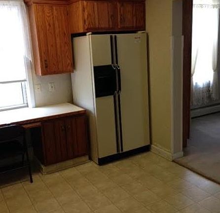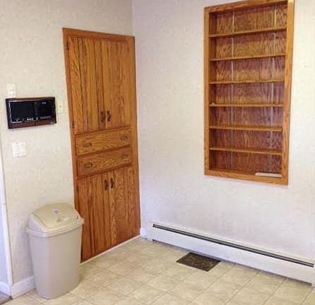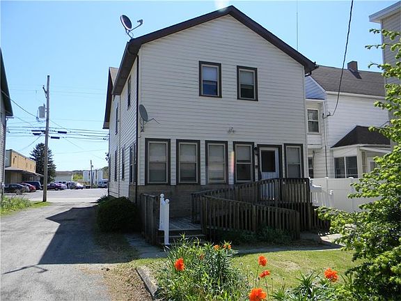 This spacious home was completely remodeled in 2000, including adding insulation, ramp on the back entrance, new roof , siding, gutters, downspout, wiring, and high efficiency hot water boiler/ heating system. There is central air conditioning and central vacuuming. The detached 2-car garage was built in 1990. The front entry leads to a sunlit room with hardwood floors, french doors, and a beautiful wood staircase. The living room has thick crown mouding and built in shelves; while the large eat in kitchen has all appliances and wood cabinets.