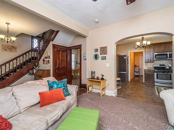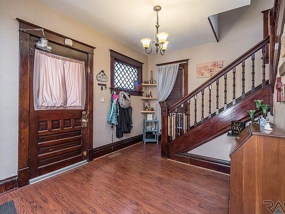 Charming 1.5 Story Home Full of Character & Class Near Downtown Sioux Falls! Delightful massive kitchen with dazzling granite countertops, newer cabinets, coveted spacious breakfast bar, generous dining area & tile floor. Main floor features flowing floor plan, open living room, desirable master suite with private bath, an additional full bath, fabulous storage & handy main floor laundry. Gorgeous open wood staircase leads to upper level hosting 3 sizeable bedrooms, with another private master suite with a ¾ bath. Quaint covered front porch, massive fully fenced in backyard with deck & brick-paver patio, firepit & 2 convenient storage sheds. Conveniently located just minutes from downtown, close to schools, restaurants & shopping, don't miss this adorable gem!