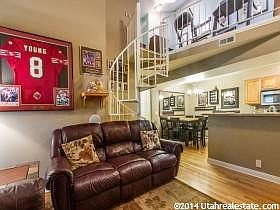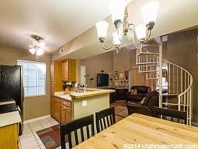 This two bedroom unit is functionally a three bedroom unit without a window. Solid oak flooring, new furnace, new water heater, new water softener, newer kitchen appliances, newer A/C, large bathroom on the main floor with double sinks. Incredibly well maintained and managed condo community with club-house, tennis court and swimming pool. Concrete base eliminates all noise from units below. Centrally located in Bountiful, walking distance from shopping, library and police station.