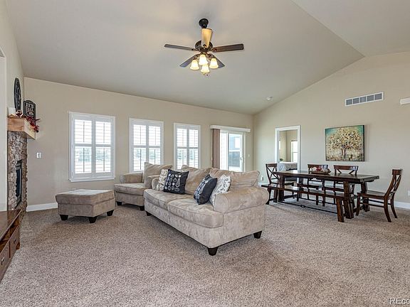 Beautiful country living in Bijou Knolls 30 minutes from Denver! Open, Sun Soaked ranch style floor plan that features vaulted & 9' ceilings. Sitting on a nice flat usable 2 acres this home and community is a perfect place to spread out with your RV's, horses and/or possible outbuildings. Great room concept on main floor with lovely living area complete with gas fireplace, dining/eating area and a spacious kitchen that features hardwood floors, beautiful cabinets, stainless steel appliances and double pantry closets. The Master bedroom has a five piece bath and walk-in closet. Quality upgrades like plantation shutters, wood interior doors and 4" baseboards. This home is nicely maintained and very clean. Attached 2 car garage is fully finished. First American Home Warranty Basic Plan transferrable to buyer at closing.