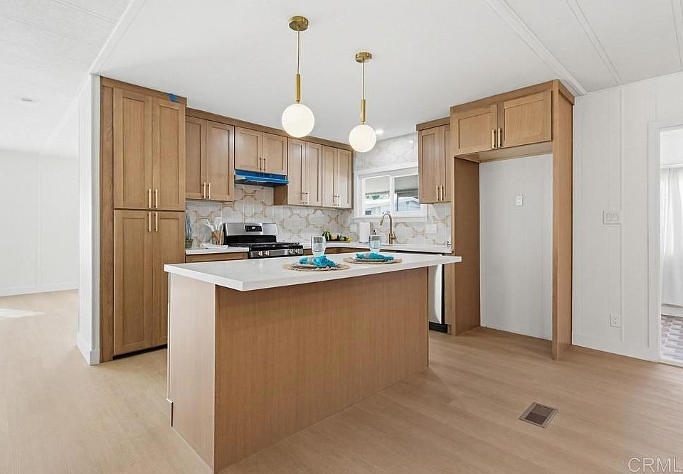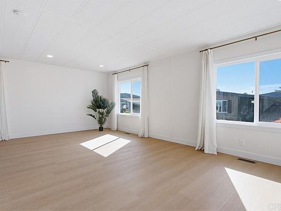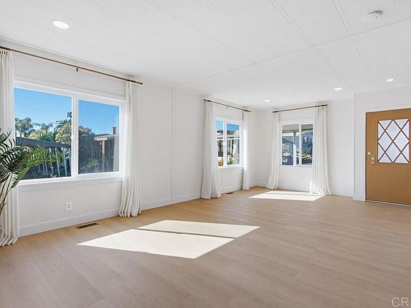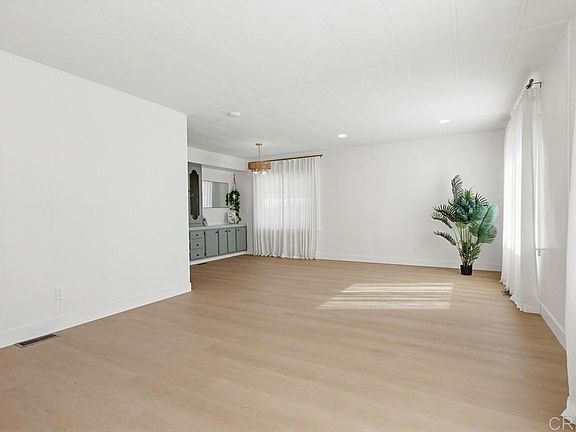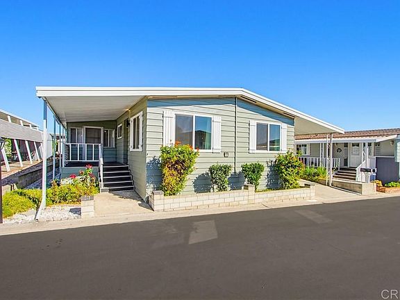 Beautifully updated home in highly desired Palomar Estates East. The wonderful kitchen has new cabinets, counter tops, tiled backsplash, stainless steel appliances, a center island, and pendent lighting. Plank vinyl flooring is throughout the home. New dual-pane vinyl windows are in all the living areas. The bathrooms have been beautifully remodeled as well. The California room/enclosed porch can be used for an office, craft room, or a grandkids playroom. This home is on registration which means NO PROPERTY TAXES. Palomar Estates East is a 5 star 55+/35+ senior rent controlled park with many activities and amenities including a beautiful clubhouse, heated pool, spa, gym, pickleball courts, and tennis courts. This home is located minutes to Lake San Marcos dining and golf as well as local Carlsbad beaches, shopping, and restaurants.