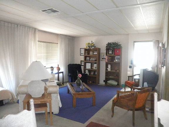 A very spacious light and bright home. The exterior recently painted. A comfortable porch in the front and expansive patio in the back. Interior features include a large living room, a family room, a fully appointed kitchen with a breakfast bar and a large pantry, the master bedroom can accommodate a king size bed and a lot more and it has two closets and a built-in linen closet. The second bedroom is comfortable in size. The 160 sq. ft. California room has plenty of space for a hobby or just to enjoy the extra space. A carport for two cars and ends with 100 sq. ft. shed. There is no lack of space in this lovely home. The park's clubhouse is fully appointed with a Library, Pool, Spa, Sauna, Fitness Room, Social Hall, BBQ Grills, Tennis Court, Putting Green, Horseshoe Pit, Shuffleboard Court, and Laundry Room. NOT on Tax Rolls. Ser. # A/B5713