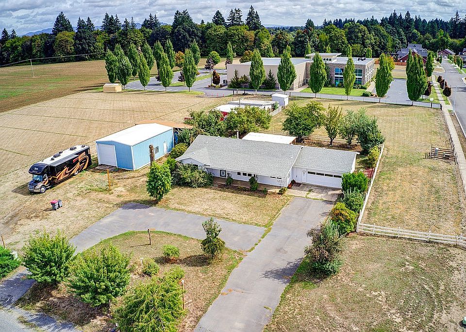 1.5 acres within Yamhill County w/development potential! Divide similar to surrounding neighborhoods, or enjoy the spacious lot w/fenced field & plentiful barns/outbuildings including indoor RV storage. Garage features additional 1/2 bath. Move-in ready single-level living w/spacious kitchen & covered deck overlooking private yard. ~6 blocks away from Chemeketa campus & medical center, & just 1.8 miles to charming 3rd St shops & dining. Buyer to do own due diligence regarding intended use.