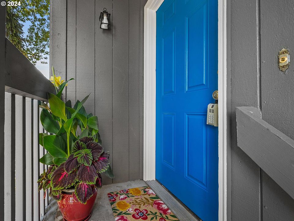 Quiet treed setting, end unit has good light. Newly remodeled kitchen, new vinyl windows, new electric fireplace with marble hearth and best of all new mini-split heating/cooling system. Unit comes with deeded garage and assigned parking next to stair. Newly painted garage, electrical panel upgraded. Seller is licensed Broker in Oregon
