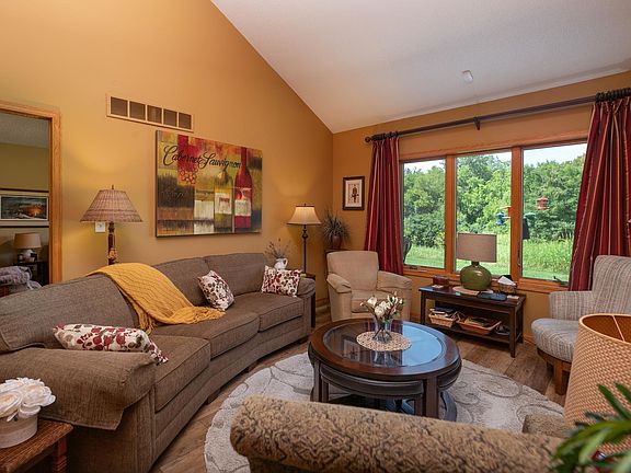 This is an extraordinary townhome located in an extraordinary setting. This location includes a pond and woods that allow for nature sightings galore. There is even an eagle’s nest nearby. This 3 large bedroom home, gives you the option of main floor living. It has 3 bathrooms and an unbelievable 4 season porch with tons of natural light. The rap-around patio allows for majestic views and great relaxation. It is a quiet setting that feels like a country setting. Newer luxury vinyl plank floor throughout the main floor. The living room has a 16+ ft vaulted ceiling along with a gas fireplace. The kitchen has dark stainless-steel appliances, hard surface counters, a movable center island, and a large pantry. Other amenities to love: main floor laundry, 6 panel doors, 3 large walk-in closets, a flower garden, steel siding, a unique family room loft overlooking the living room, laminate flooring throughout the upper level and a 2 car garage. The new storm door allows for southern light and has a high insulation rating. A new furnace and AC in 2021. Though this SW setting feels like you are in the country, you are near a golf course, a park with playground and recreation fields, near shopping and easy access to main highways. Pets are welcome.