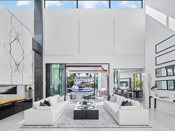 Welcome to Maison de Verre, a contemporary waterfront haven nestled within the prestigious gated community of The Sanctuary in east Boca Raton. This newly constructed estate exudes an air of sophistication, grace, and refined living.Spanning an impressive 13,993 square feet, with approximately 8,826 square feet of meticulously designed interior space, this contemporary masterpiece boasts 7 bedrooms, 8.2 bathrooms, and 65 feet of waterfront frontage.Upon arrival, guests are greeted by a grand entrance featuring soaring 30-foot ceilings, while floor-to-ceiling glass windows invite ample natural light to illuminate the expansive interiors. Art aficionados will appreciate the opportunity to showcase their prized collections. The interior design is a harmonious blend of timeless elegance and modern luxury, meticulously curated with impeccable craftsmanship and premium finishes.