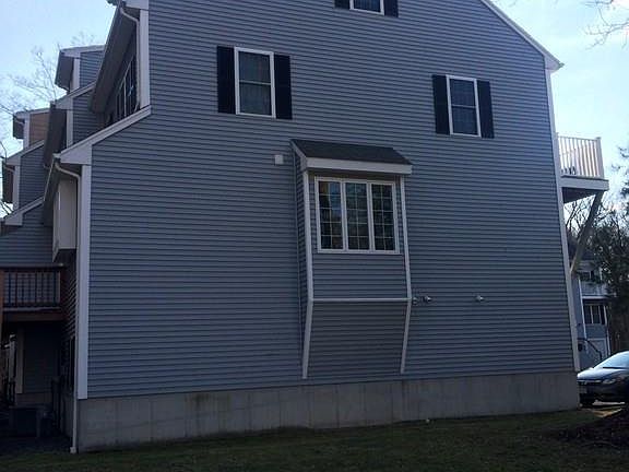 This bright end unit offers a quiet lifestyle both inside and out, good solid construction as well as a maintenance free exterior. The Complex is close to great schools, shopping, public transportation and Route 95, all while still retaining the country feel with wooded views from the relaxing deck. A versatile floor plan offers 3 bright oversized bedrooms all with large closets, the huge 3rd floor Master could also be used as a large second living or media room. The kitchen has been done in tasteful neutral colors, Tile floors & Corian counters, the warm stained cabinets offer lots of storage. All appliances including the laundry equipment will remain with the condo. The garage is only listed as a 2 car garage, but currently has 3 cars in it. Nest thermostat, Harvey vinyl windows and proper insulation help keep the utility bills very low. Quick close possible as home owners are ready, FHA approved