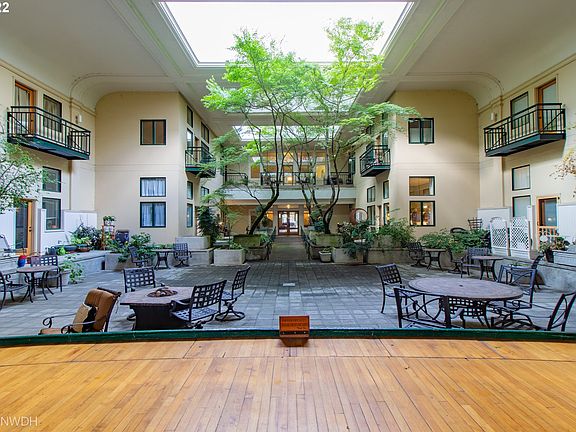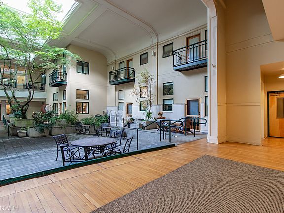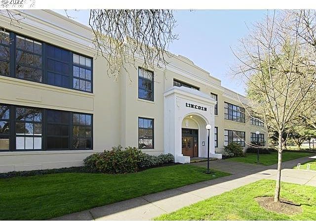 Character-filled Lincoln School was remodeled into condos in 2006. ADA access, convenient to downtown, upscale finishes including original wood floors, granite, stainless appliances, travertine tile, and custom tile bath. This unit has a step-up sleeping area. South-facing unit with a wall of windows for beautiful light exposure and with blackout drapes included. Open courtyard, secured entry, deeded parking, secure bike storage, laundry steps away from unit. Lovely common spaces.