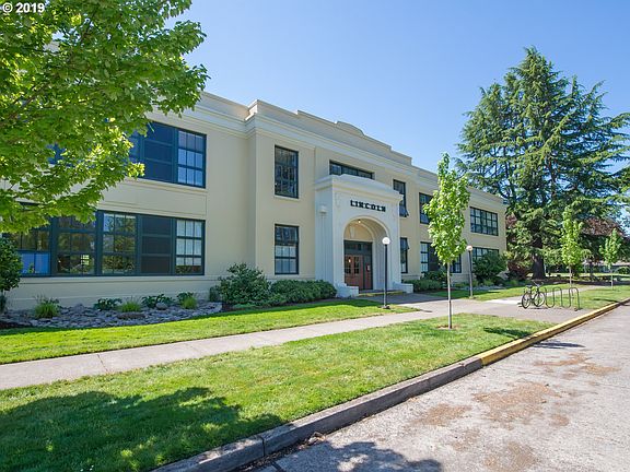 Studio style condominium on the ground floor of the historic Lincoln School. Featuring maple cabinets, granite counters, high ceilings, large windows, and stainless steel appliances. Lovely gated common area with a beautiful atrium, laundry, bike storage, & assigned parking space. Next to bus lines, bike paths and only minutes from the U of O and downtown. Visit 3D virtual tour link.