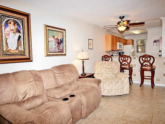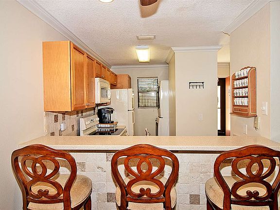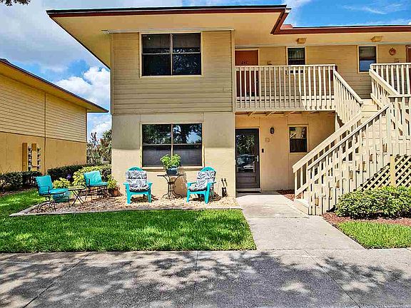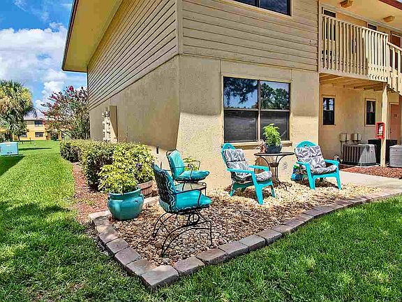 This updated condo is perfect for a "starter home" or a 'Downsizer's dream! There are 2 bedrooms and 2 baths for optional living opportunities. It has been completely updated over the last few years (fresh paint,new cabinets, 4 fans) and truly turn key. Just unpack, then soak up views of the lush landscape and lake or take a dip in the pool...steps from the back door!. An additional patio is added to the front of the unit, offering space to lounge , greet the day or take in afternoon breezes. The updates continue as crown molding was added to the living area. The roof in the condo unit was replaced in 2017 as well as the inside pipes.There is a Reverse osmosis water filter in the kitchen and the Water Heater was replaced in 2012. The HVAC was replaced in 2016. The owners placed a Storm Screen Door in 2017 and Kevlar Storm Shutters were installed this year (2018).