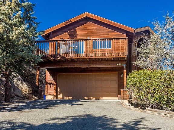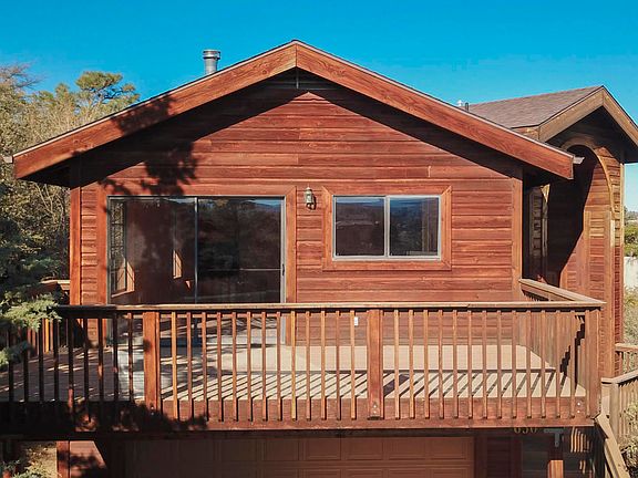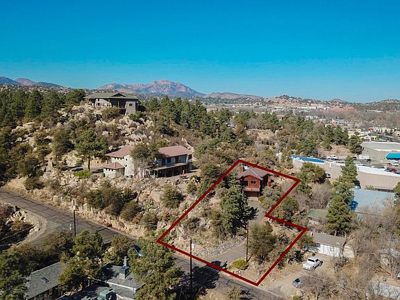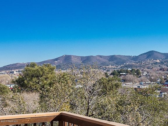 Looking for a home a short walk from the Courthouse Square with PANORAMIC VIEWS, then this rare listing in the neighborhood just west of Miller Valley Rd on Sheldon may be the home you've been looking for. Cedar siding gives a rustic feel to this 1996, 2 level, 3 bedroom/2 bath, 1584 sf home nestled in a private hillside setting on .25 acres. Great room features tile floors & gas fireplace. Large viewing deck can be accessed from the kitchen/dining area on main level. Master bedroom w/ walk-in closet & bath also on the main level. Lower level features two additional bedrooms, bath, & laundry room. Large two car garage and a good sized dog run for the pooch. Rental potential with close proximity to Prescott College. Family home since 2006.