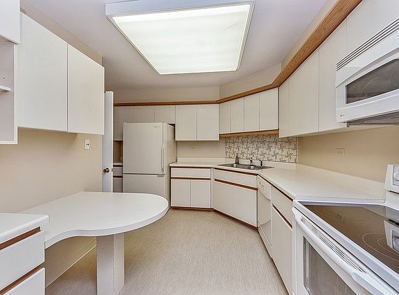 Very sought after first floor with private patio and garden. This unit has a ranch home feel. The elegant living room has a stunning fireplace. The large formal dining room opens to the patio. The third bedroom opens to the living room, has a door to the patio and is currently used as a family room. The large master bedroom has a huge walk-in closet and en-suite bath. Recently painted and refinished wood floors. Attached garage, heated outdoor pool. Walk to train, shops and lake from this in town location.