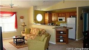 Enjoy this Contemporary Townhome Condominum with vaulted Great Room with Fireplace. The Painting really enhances this Home. Spread out with the Open Living Room, Dining Room , and Kitchen. The foyer adds to contemporary flow. Lots of Closet Space. Windows with faux wood blinds.The Kitchen offers lots of oak cabinets and plenty of lighting with unique window. The Large Master Bedroom with Walk-in closet. Master Bath offers a whirlpool tub. The 2nd bedroom is also a nice size. Such a private atmosphere and balcony that views clearing. It is such fun to have the pool at your disposal and there is also a clubhouse for entertaining. Easy access to I-65 and Gene Snyder. Come and enjoy!