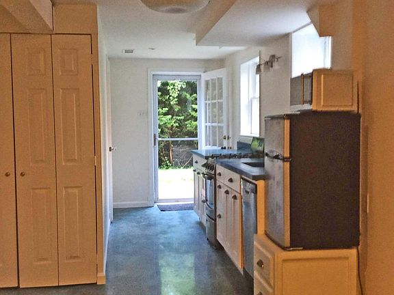 SECLUDED BROOKMONT STUDIO, PRIVATE GARDEN. -- Rarely-available studio apartment in Brookmont MD, Bethesda Magazine's "Best Neighborhood for Outdoor Lovers." -- Light, airy, charming basement studio in private home. Walk-out with private separate entrance and backyard. -- One large room, full bath, full kitchenette, and lots of natural light. Fully self-contained, private, and separate from main living space. -- Completely renovated and upgraded. Polished-concrete floor in teal marble finish. Updated bath and kitchen fixtures, lighting, walls, and woodwork. -- Full kitchen with colorwashed wood cabinets, slim stainless steel appliances, gas range, dishwasher, disposall, refrigerator, and microwave. -- Cobalt polished-concrete counter and sink. Gourmet pull-out faucet. Vent fans in bath and kitchen. -- Cute 3-sided bow alcove in main living area. Spacious dual shower in windowed private bath. Updated slim vanity with oval farmhouse sink and satin nickel fixtures. -- Secluded private patio and backyard. Off-street parking in driveway. Ample on-street parking. -- TERMS: $1600/month for month-to-month or annual lease. -- Includes all utilities: Heat, central A/C, water, stove gas, Verizon FIOS wifi, and trash/recycling. No-contact access to washer-dryer in main house easily scheduled by text. -- TRANSPORT: #23 Ride-On across street. Runs every half-hour; 20 minutes to Friendship Heights Metro. Metrobus #D6, two blocks away. Capital Crescent Trail is nearby for bike commuting to Bethesda, DC, Arlington. A 5-minute walk to ICC-B Intelligence Campus. -- AMENITIES: A 5-minute walk / drive to Shops at Sumner Place: Safeway, CVS, Starbucks, beer-wine, 2 good restaurants, bakery, yoga, banks. -- A 3-block walk to the Potomac River, C&O Canal, and Capital Crescent Trail. Many "hidden gem" hiking trails. A world-class whitewater slalom course, used for Olympic kayaking trials. -- Farmers market and food trucks on the neighborhood green every Wednesday afternoon. All utilities & wifi included. No pets. No tobacco. Single occupancy. Credit and reference checks.