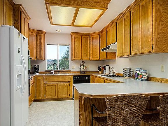 3/2 home on 5 acres with stream. Close to town, Hwy 50 and all the conveniences. Circular drive and attached garage to hold all your toys. Paved access. Enjoy Natures Wonderland from your expansive deck. Vaulted Ceilings, Newer heat and air plus woodstove. Master Suite with door to deck. One level home. Private end of street location. This one has it all!