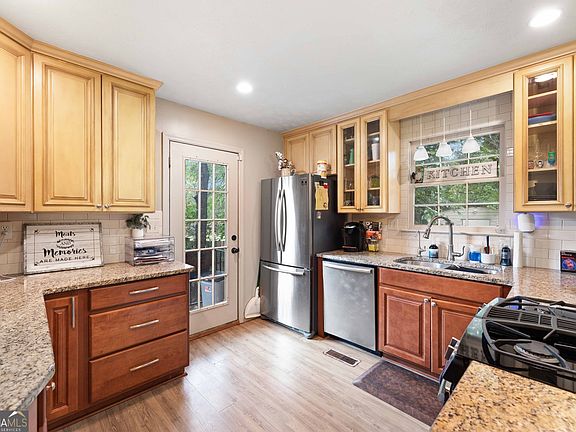 4 BD 1.5 BA split-level home with lots of character. Entry foyer opens into living room, which could become an office, or a playroom. The kitchen has granite countertops, gas range and peek-thru cabinets, LVP flooring. Three spacious bedrooms upstairs, including the master. One bedroom downstairs, as well as a separate den with fireplace feature. French doors open into large fenced backyard. This is a well established neighborhood, with schools, and convenient dining and shopping.