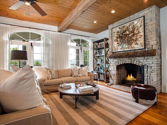 Private peninsula and personal dock on Center Hill Lake. One of a kind 3.5 gated acres. Hampton style main residence home boasts over 6,100 sq ft with heated pool, theatre, helipad, and private dock. World-class amenities. 3 homes. All new guest house in 2013. Vintage cabin accommodates larger groups. Serene, breathtaking views. Minutes from Hurricane Marina. Home available furnished for $5.5m except some select personal items