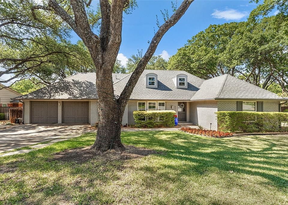 Beautiful home located on Fort Worth's West side in Ridgmar Estates. Huge oak trees frame this home on a large corner lot. Extensively renovated in 2014 this home features a modern flair in finishes and decor detail. Great open floorplan with primary bedroom downstairs. Light color finishes with updated newer baths, flooring, and fixtures. The open kitchen features an island breakfast bar, abundant cabinetry, pantry, double SS ovens, gas cooktop, tile backsplash and SS sink. An adjoining laundry room has space for a freezer or refrigerator. The large living area is accented with a fireplace and a lot of natural light. The formal dining area is just off the herringbone tiled foyer. The upstairs features 3 bedrooms and 2 baths. Two bedrooms share a Jack and Jill bath. A large open living area is perfect for play and entertainment. The backyard is an oasis in the city. Huge covered patio, rock waterfall feature, outdoor patio in the trees, and a fabulous sports court for the kids. 2022-09-06