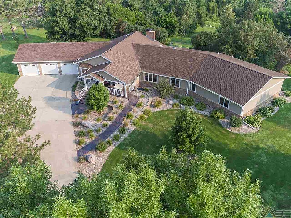 Showstopping 7 bed, 4 bath ranch walkout is nestled on 4 acres in a secluded wooded area. Enter through an impressive covered front porch with wheelchair access to a huge open concept space with formal dining room, living room, and family room with fireplace. The spacious eat in kitchen has newer cabinets and granite countertops with a slider to a large deck. The master suite features a tiled Jacuzzi tub and fireplace area as well as a makeup vanity. There are 4 more large bedrooms, office with French doors, 2 full baths, main floor laundry, and mud room with lockers and sink. In the lower level get cozy to a wood burning fireplace in the family room or relax at the wet bar. With another 2 bedrooms and a full bath, there is room for everyone! Outside you will find an attached 3 stall garage, detached 2 stall garage, and a partial fenced yard with sprinkler system. Nothing to do here except enjoy the breathtaking views under the mature shade trees or to relax by the stone fire pit!