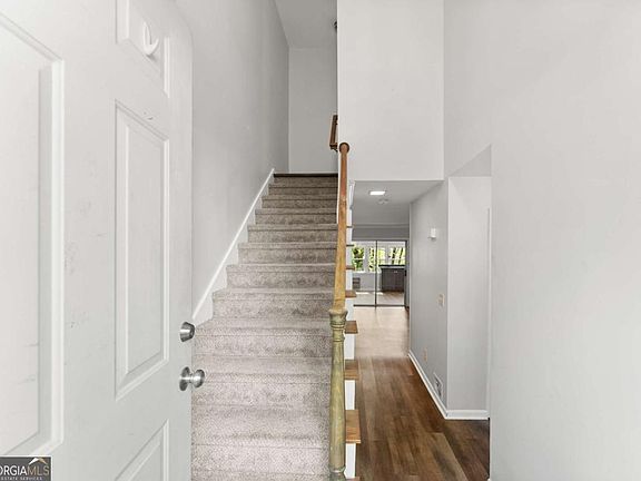 Welcome to Cinnamon Cove, a charming lakeside community on Lake Lanier! Nestled on a lot with peaceful wooded views and seasonal glimpses of the water, this townhome balances tranquility, functionality, and affordability. The main level offers a welcoming two-story foyer, a spacious living area, a bright sunroom overlooking the trees, an eat-in kitchen with newer appliances, and a convenient half bath. Upstairs, you'll find two generously sized bedrooms and a full bathroom. The finished walk-out basement takes this unit over the top! Ideal for a third bedroom, guest suite, or recreation space, with plumbing already in place for adding a full bath or kitchenette, complete with its own private entry. The Cinnamon Cove community offers low-maintenance living, where the HOA is responsible for handling lawn care and maintaining the property's exterior! You'll also have access to the community amenities, including a clubhouse, pool, and a private walking trail leading to the lake. Enjoy feeling tucked away while remaining just minutes from shopping, lakeside dining, Van Pugh Park, and Downtown Flowery Branch. Don't miss this opportunity to enjoy lakefront living at an affordable price!