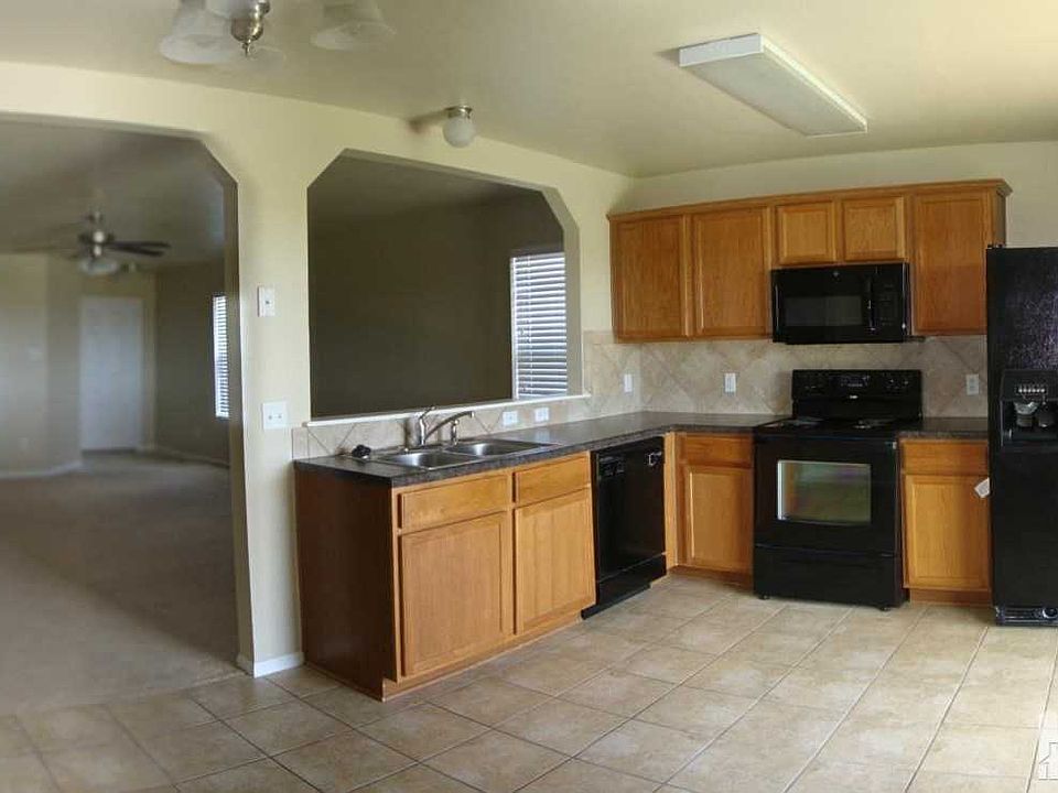 Single story, 3 bedroom home in Southwest Killeen with an office! 1,482 square feet in this lovely 3 bedroom, 2 bathroom home with includes and office (or additional living space) plus two car garage with opener (2 remotes), wood privacy fenced backyard, covered patio, all electric appliances to include side-by-side refrigerator with ice maker, built-in microwave, dishwasher, stove and garbage disposal. This home has a water softener, ceiling fans in living room, all 3 bedrooms and office. Carpeting and ceramic tile flooring, alarm system (tenant pays for monitoring), walk-in closet, double vanity in master washer/dryer hookups. This home accepts pets per our policy, with deposit.