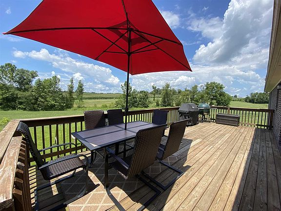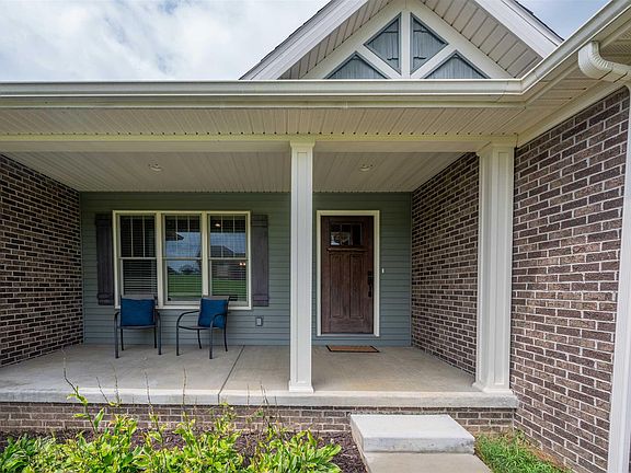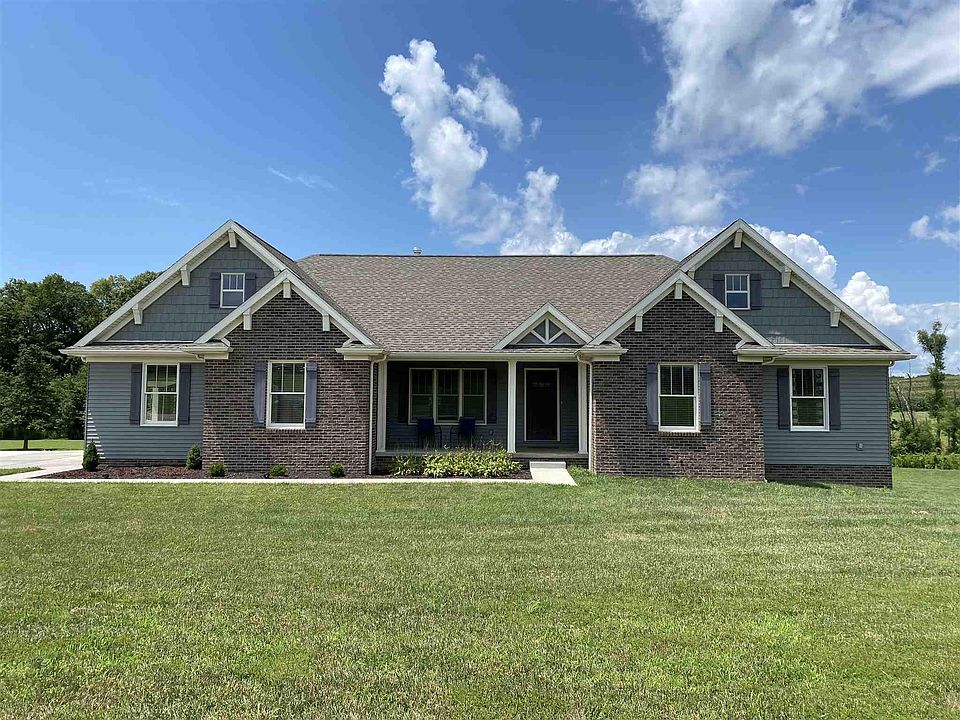 Beautiful Craftsman Style 5 BR 3.5 Bath Ranch with Finished Walk-Out Basement in Wade Park Subdivision just minutesfrom Evansville! This 5 year old home is located in the back of the subdivision, and you can enjoy never-ending views of sunsets and unobstructed views of rolling farm ground from your deck! The spacious Great Room has a gas fireplace flanked by large bookcases and cabinets, soaring ceilings, and opens to the Kitchen. There are plenty of white cabinets and countertops for storage and meal prep, but the hall just off the Kitchen has a large pantry with a sliding barn door. The unique sink is hammered copper! The Master Suite and three other Bedrooms and Hall Bath are on the main floor. The mostly finished Walk-Out Basement has a huge Family Room with Dining Area, Kitchenette, the 3rd Full Bath, and a large Bedroom that can also be divided into 2 Bedrooms to total 6! There is also another multi-use room currently used as a work-out room. There are 2 big storage rooms plus another room under the porch and would be a great "safe-room" to shelter in storms. Off the Family Room is a door to access the patio with ceiling fan that is located under the deck. The Lower Level could be ideal as a separate Living Space for family members to stay when they visit. On the main floor, there is a fabulous back hall off the Kitchen the leads to the 1/2 Bath, Laundry with a nice sink and plenty of storage, pantry, built-in desk, and huge built-in seat with places to hang backpacks, jackets, etc! The Attached Garage is finished, has a service door, 2 storage areas, and a drain. The driveway was recently replaced with a long concrete drive to lead back to a future pole barn! See the attached list of amenities!