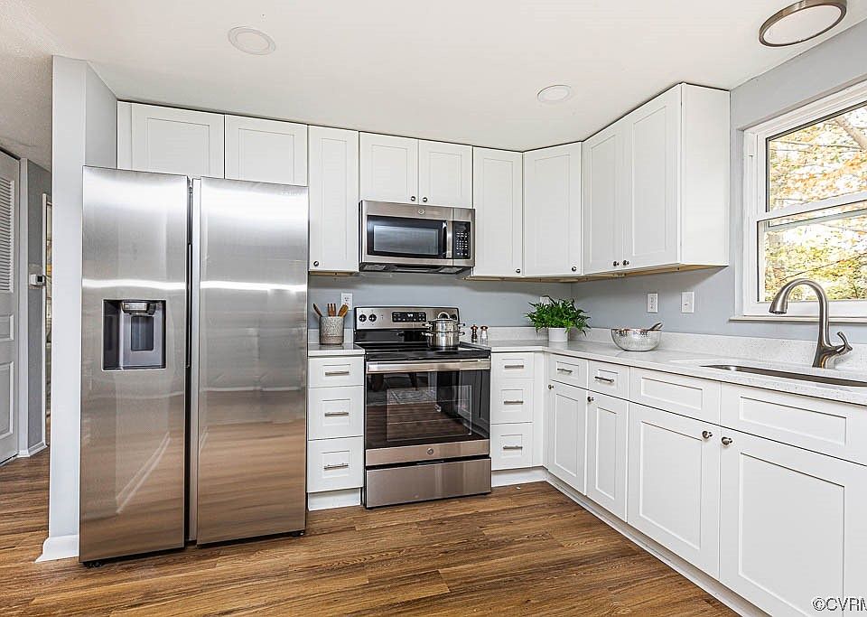 This 4-bedroom home that has undergone a complete renovation, ensuring it's ready for you to move in and start enjoying immediately. Step inside to discover all-new flooring seamlessly spread throughout the entire home, providing a modern and cohesive look. The heart of this home is the kitchen, boasting brand new cabinets, quartz counters, and stainless steel appliances. The open layout of the kitchen flows seamlessly into the dining area, creating a perfect space for entertaining and family gatherings. From the dining area, step into the spacious living room, creating a welcoming and airy atmosphere. One of the highlights is the access from the dining area to the large deck, recently power washed and perfect for outdoor relaxation or entertaining guests. Upstairs, the full bath has been transformed with a new double vanity, a beautiful tiled floor, and a newly tiled tub surround. This elegant and functional space is designed for both convenience and style. Added bonus, the HVAC and hot water heater are brand new making this home truly ready to move in. Home is eligible for Pathway Home Product.