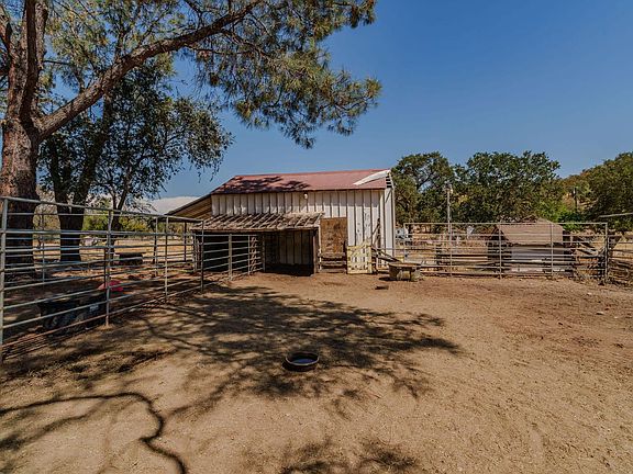 Bring your ranching dreams to life on this sprawling 17.36 acres. This fully fenced and cross-fenced property offers a true country setup with a gated entry, rolling hills, mature native oaks/evergreens, seasonal creek, and a year-round spring-fed pond. The 1,620 SF home features 3 bedrooms, 2 baths, newer laminate flooring, split floor plan, and dual living areas with a double-sided propane stove. The updated kitchen includes custom cabinets with pull-outs, gas stove, butcher block island, and all appliances included. Outdoor living is designed for livestock, agriculture, and recreation with horse paddocks (up to 8 stalls with lean-to), cattle area with solar hot wire fencing, hay barn, goat house, chicken coop, and garden area with greenhouse and fruit trees. Multiple outbuildings provide storage and workspace, including a large barn/shop with 220V, gazebo with electricity, a detached two-car garage with shop/tack room and new Septic System. RV hookups on site and Starlink Internet included with an acceptable offer. Upper acreage offers potential secondary homesite with 360-degree views. Enjoy country living with modern comforts and LOVE where you LIVE!