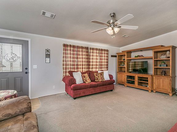 Clean property located between Amarillo and Canyon on +/-1 acre. Property boasts a storage shed with electricity, storm shelter and a large circle driveway and trailer parking. The home includes 2 large living areas, one with a wood burning fireplace. There is an isolated master suite with recently remodeled bathroom including new flooring and new shower. There are 2 other bedrooms and a full office. The kitchen has lots of storage and counter space including an eat-in bar area and large pantry! Property feeds into Canyon High Schools.